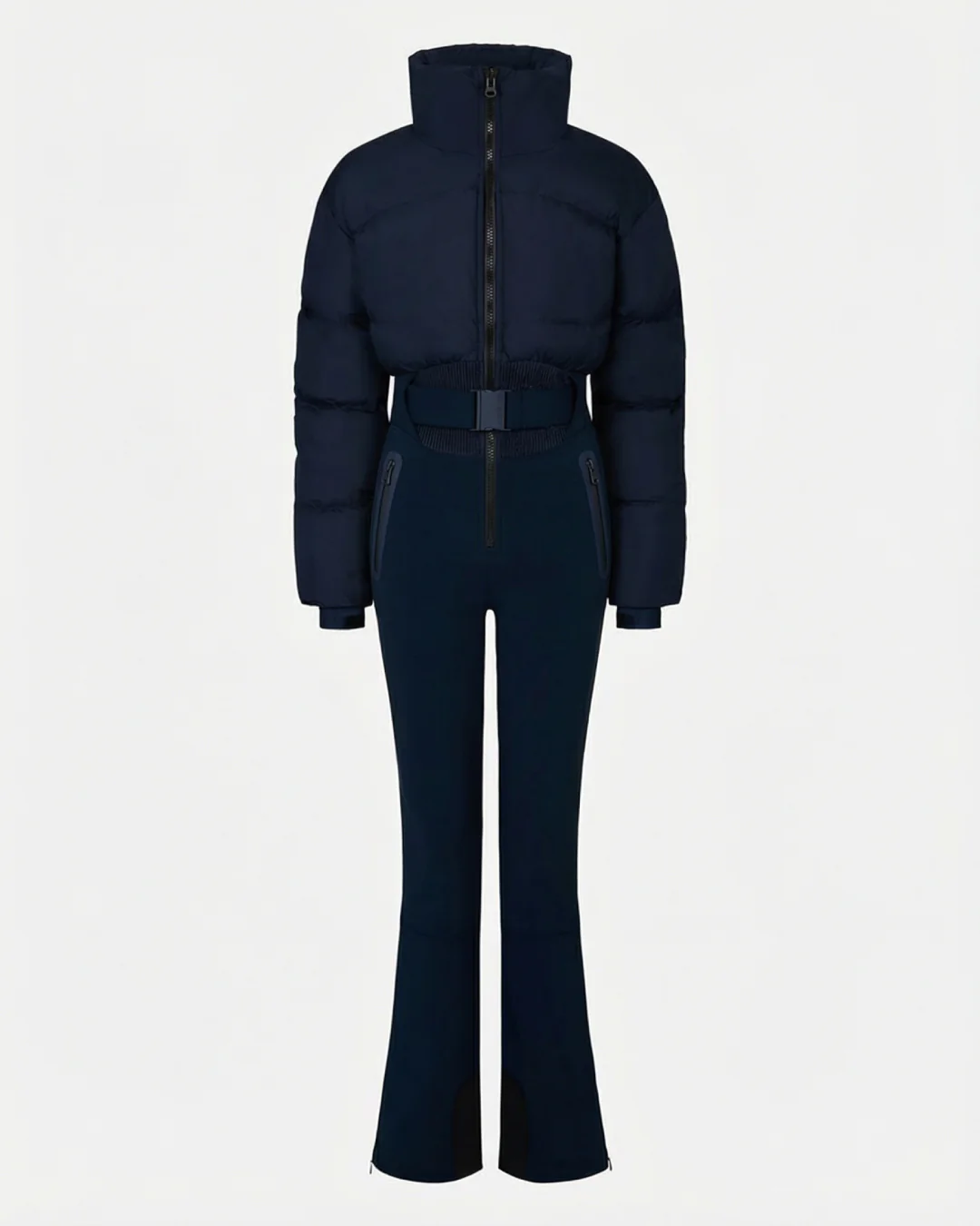 The Fassa ski suit features an elasticated and rouched waist for added contouring and a 3K waterproof, down-insulated puffer top for warmth and shape. OEKO-TEX® certified softshell construction delivers windproof, water-repellent performance.